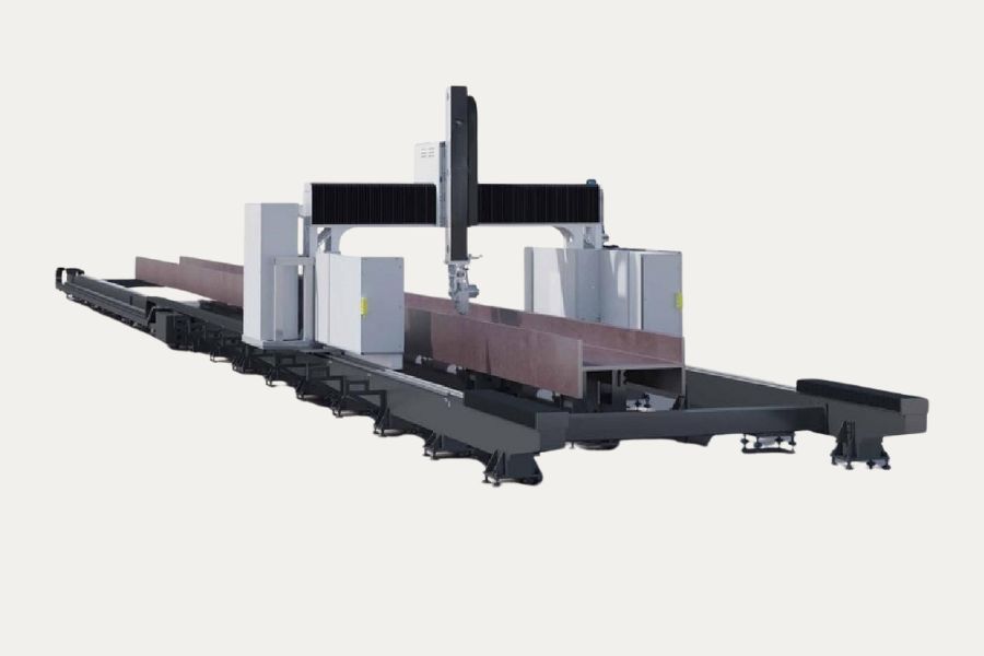 Specifika: 3D úkosové řezání, široký portál s dvojitým pohonem, robustní konstrukce, přesnost i při vysokém zatížení, evropské a americké certifikace